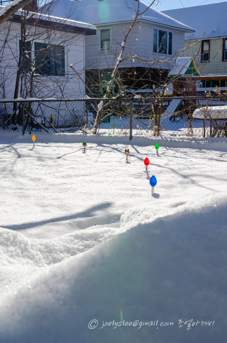 잔디들은 겨울동안 살아남아있을지 의문이 들정도로 매주 조금씩 눈이 와서 적정량을 유지하고 있는듯하다. 우리집앞에 외부조명을 설치해서 꾸며놓긴했는데 얼마나 갈지 궁금함 ㅋㅋ