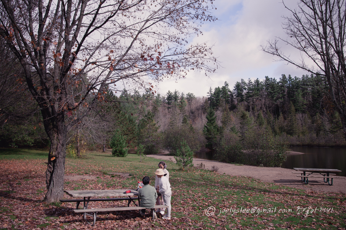 잠깐이나마 벤치에 앉아서 스낵타임을 가져본다. 오... 이때 한국이모가 보내주었던 홈런볼, 허니버터칩등 과자를 가져왔던것 같다. 정말 미친 배송료 때문에 두번 부탁하기 힘든 한국 군것질거리였지만... 대도시 토론토처럼 한인마트가 있다면 좀 덜하겠지만 여기 소도시에는 한인마트 그림자도 볼수가 없어서... 쪼끔 아쉬울때가 있다.