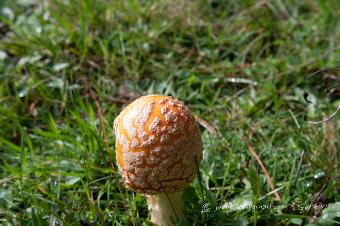 색이 화려한 (도옥)버섯이 귀엽다. 캐나다 사람들이 버섯을 좋아한다는데 식용인지 아닌지 기본지식 정도는 갖춰야 할듯하다. 아무데나 자랐고 색깔이 좀 있는 녀석이다 보니 아무래도 이건 식용이 아니겠지? ㅎㅎㅎ 쑥쑥 자라고 있다.