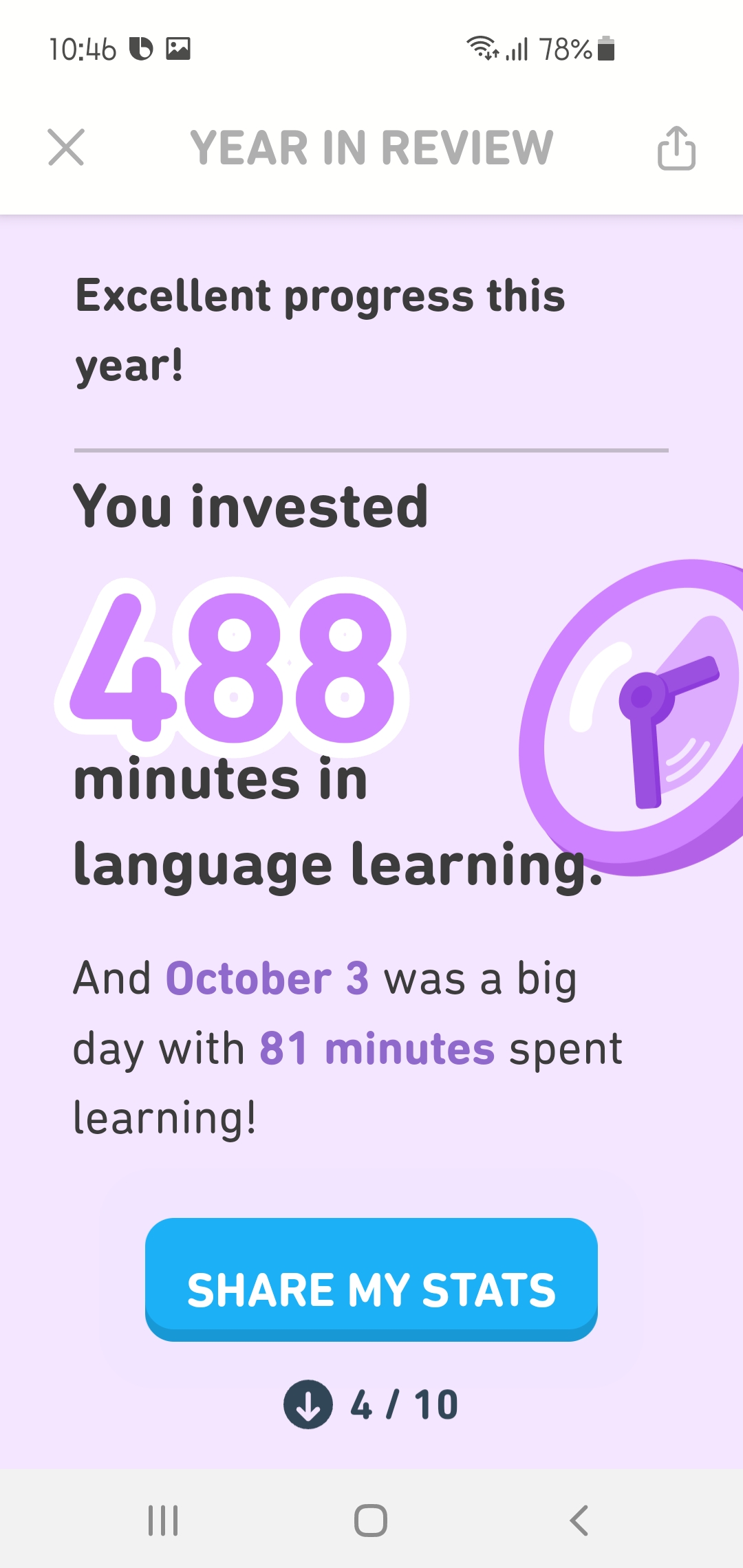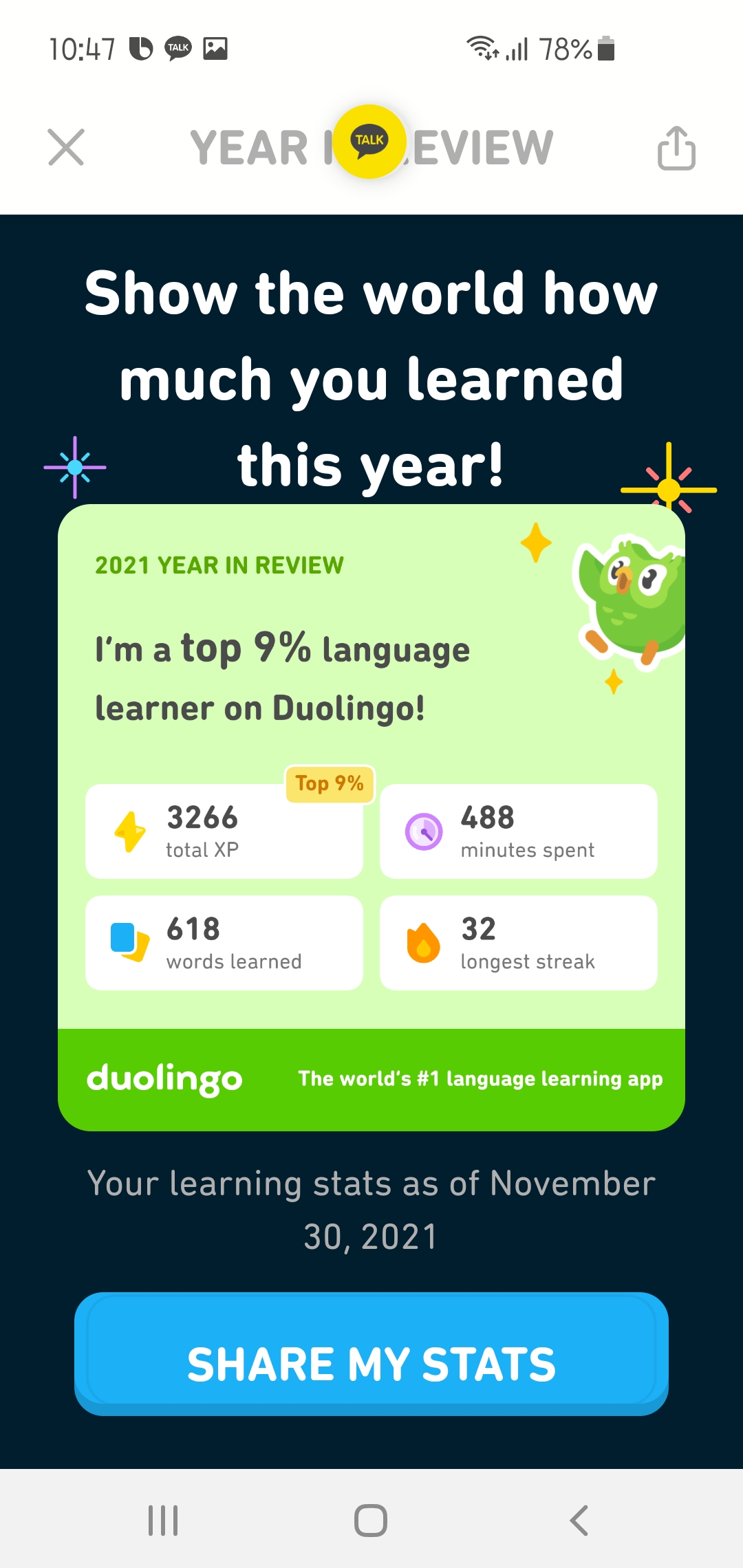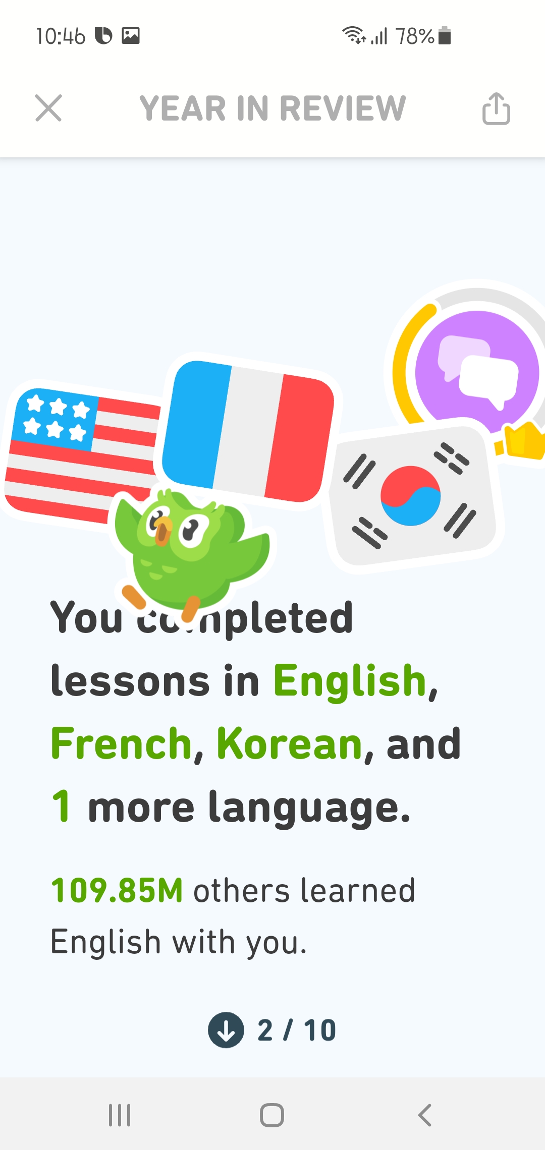 듀오링고에서 제공해주는 나의 일년간의 성과가 어떤지 집고 넘어가보자.