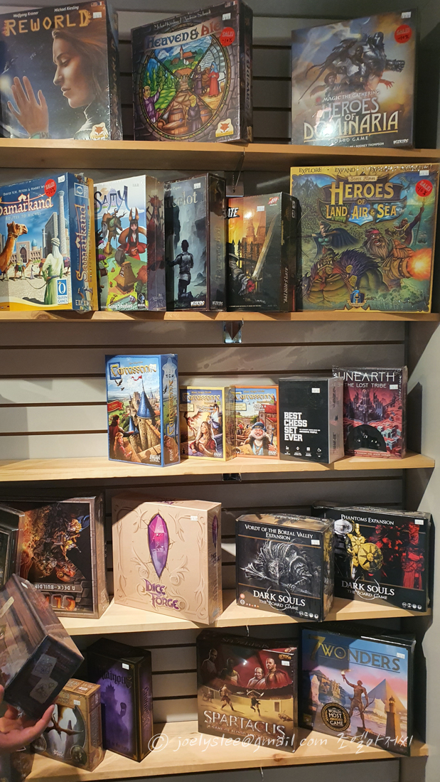 트레이딩 카드게임을 주로 하고 이 보드게임들은 부로 하는 것 같았다. 약간 온라인보다 비싸서 아쉬웠음... 저렴한 카드게임 한개 업어왔었다. 동네 아재들과 어울릴 수 있는 기회가 있었지만 좀 여유가 생기게 될때 다시 방문하기로 함...