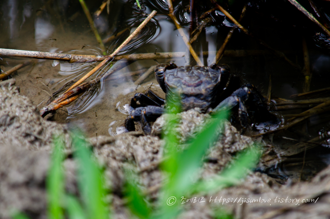 갯벌이 안으로 들어와 있는 구조라서 민물 게나 개구리, 물고기 등도 볼 수 있습니다.
