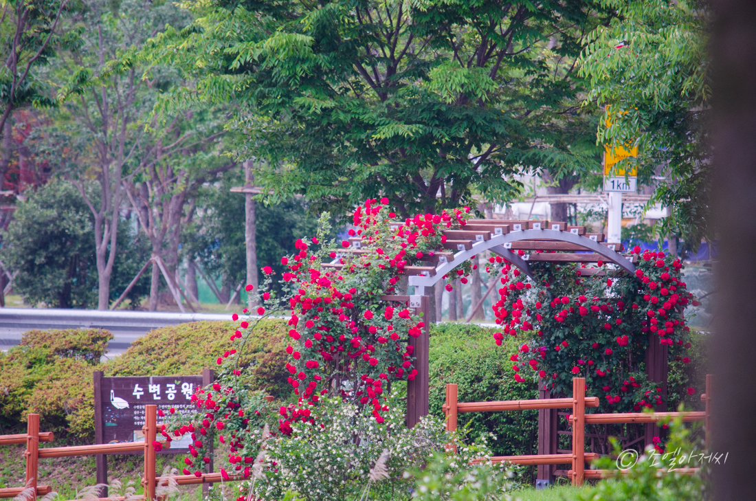 나오면서 찍은 사진인데 역시 6월의 푸르름을 나타내는 풀향이 느껴지는 시간이었다. 밝은 낮시간에 공원을 방문해서 사진을 찍으면 항상 느끼는 것인데... 푸르른 나무숲과 예쁜 꽃들은 밝은 기운, 태양의 기운을 먹고 살아간다는 것을 강하게 느낀다. 사람들은 뜨거운 태양을 피해서 다니기에 바쁜데 이러한 푸르른 나무들과 꽃들은 태양빛을 먹고 살아간다는 것이 강하게 느껴진다.